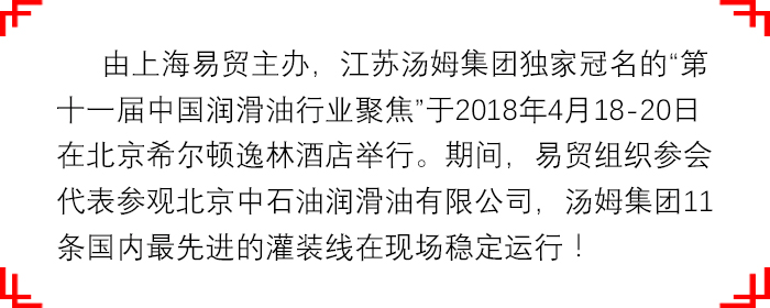 江蘇湯姆集團獨家冠名的中國潤滑油行業(yè)聚焦圓滿(mǎn)結束!