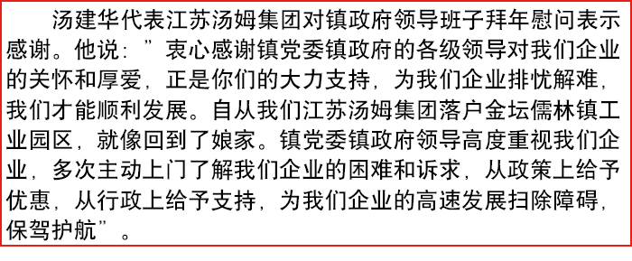 金壇區儒林鎮政府領(lǐng)導班子來(lái)湯姆集團拜年!