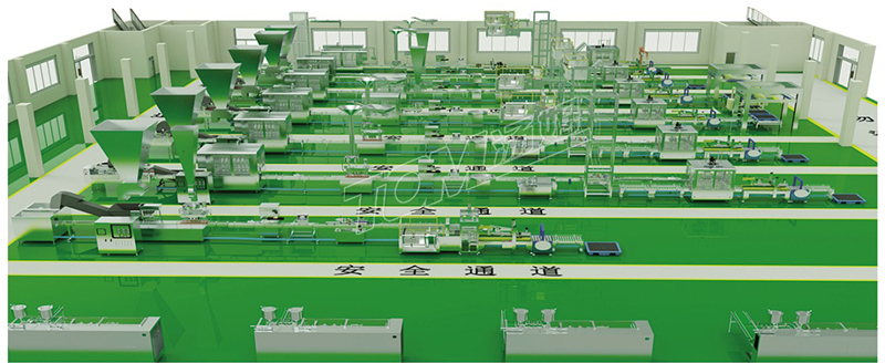 布局:車(chē)間按兩層設計,二層主要用于包材倉庫,加瓶、加蓋、自動(dòng)開(kāi)箱及投料。一樓主要有包裝流水線(xiàn)。