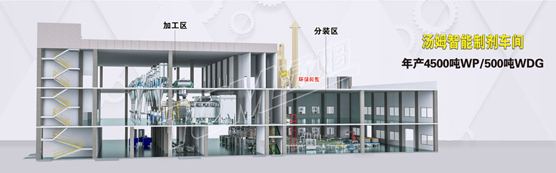 5、環(huán)保裝置在分裝區二樓樓頂,可以解決廠(chǎng)區的安全間距問(wèn)題,并符合排放高度要求,而且所有的環(huán)保管道路線(xiàn)短更有效的解決車(chē)間除塵除味的環(huán)保問(wèn)題。